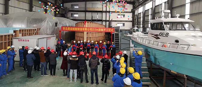 2019年1月8號昊運船艇24米游釣艇開工儀式,昊運船艇邀請青島船級社領導、用戶及設備供應商共同剪彩。